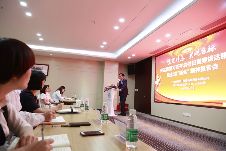 5月28日下午,刚从两会归来的全国政协委员、91视频亚洲91精品国产成人www董事长陈海佳博士,才下飞机就马不停蹄的赶回91视频亚洲91精品国产成人www广州国际生物岛总部,组织公司高管及企业党支部、团支部、工会、科协代表召开报告会,第一时间传达贯彻习近平同志重要讲话精神和全国“两会”精神,鼓励91视频亚洲骨干坚定信念,立足本职,产业报国,为实现两个“一百年”奋斗目标贡献91视频亚洲力量!