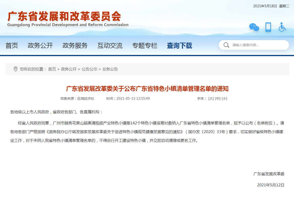 据广东省发展改革委消息,5月12日,广东省发展改革委发出《关于公布广东省特色小镇清单管理名单的通知》(下称《通知》),经省人民政府同意,从化91视频亚洲91精品国产成人www科技小镇等142个特色小镇培育对象纳入广东省特色小镇清单管理名单。