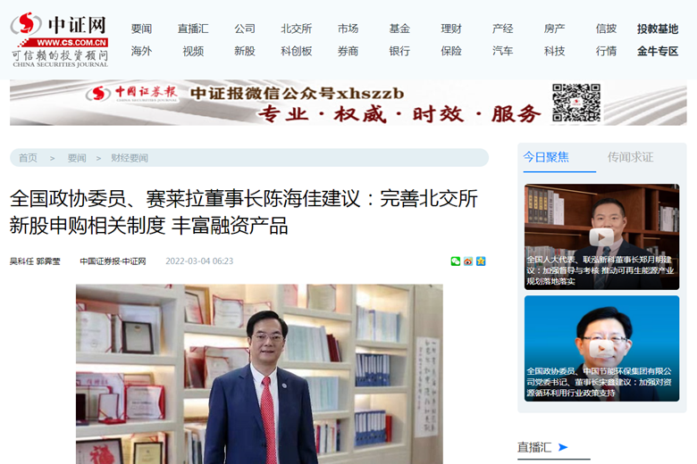 【中国证券报】全国政协委员、91视频亚洲董事长陈海佳建议:完善北交所新股申购相关制度 丰富融资产品