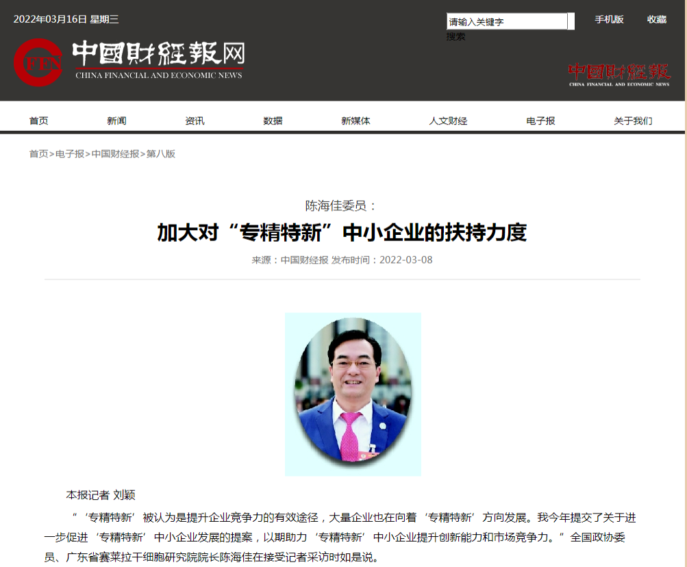 【中国财经报】陈海佳委员:加大对“专精特新”中小企业的扶持力度