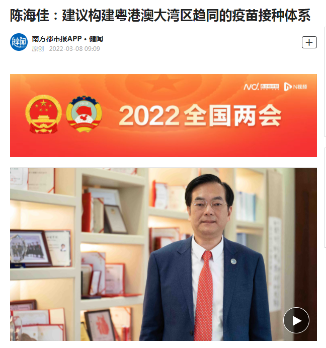 【南方都市报】陈海佳:建议构建粤港澳大湾区趋同的疫苗接种体系